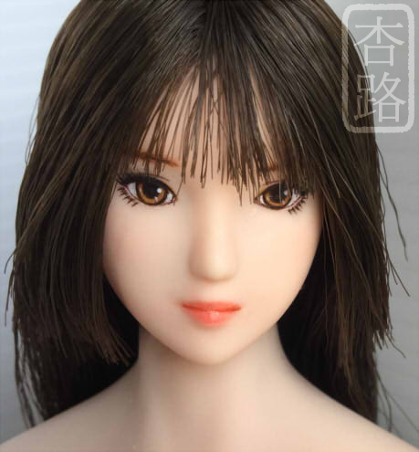 1/6カスタムドールヘッド オビツ27 リカステ オビツ 27cm用 植毛ヘッド使用 肌色はナチュラル、髪はダークブラウンです ペイントにはリキテックス使用 全体にマット保護、瞳と唇は光沢加工しています 首穴はルーターによる拡張加工をしています TBLeagueのS18Aボディとの組み合わせ例 PR