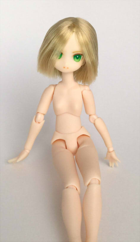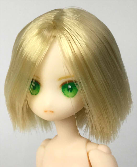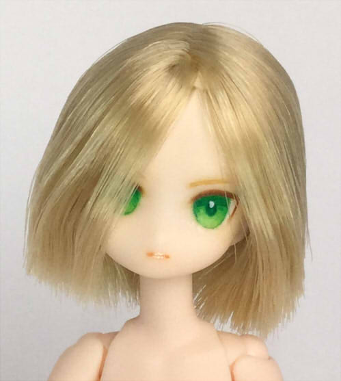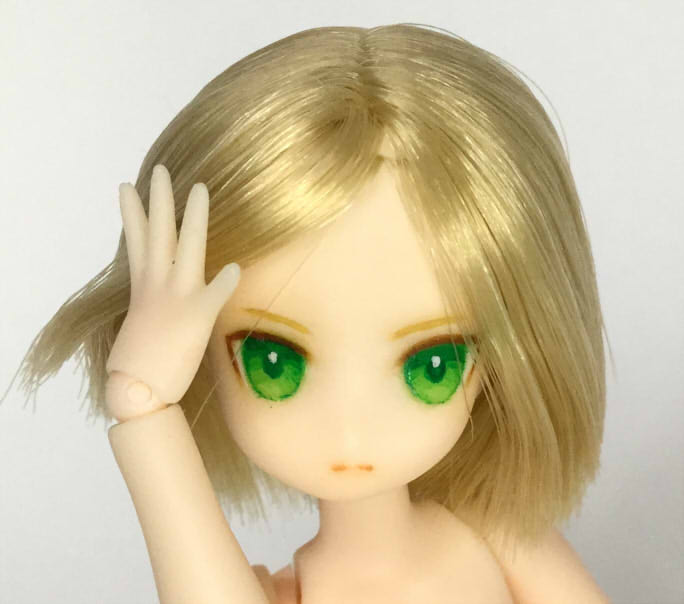 ピコニーモS カスタムドールヘッド 翠玉 ピコニーモS 植毛ヘッド 白肌 ゴールド ペイントにはリキテックス使用。 マット保護してます。 髪はお湯パーマで整え、ボブカットにしました。 ピコニーモSボディ(白肌)との組み合わせ例。