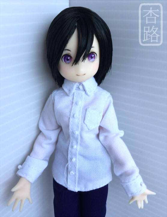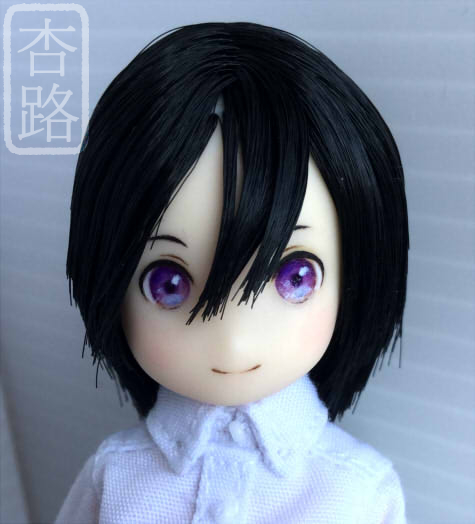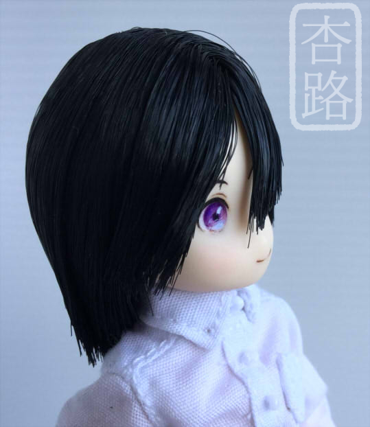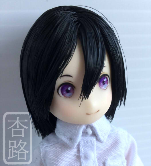1/12 カスタム ドール ヘッド ピコニーモS 瑠璃 アゾン ピコニーモS用 植毛ヘッド 白肌 ブラック ペイントにはリキテックス使用 ペイント部分をマット保護、瞳は光沢加工しています お湯パーマ後カットしました ピコニーモSボディ 白肌 との組み合わせ例