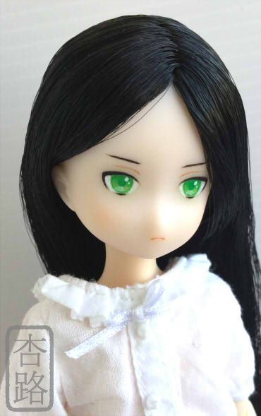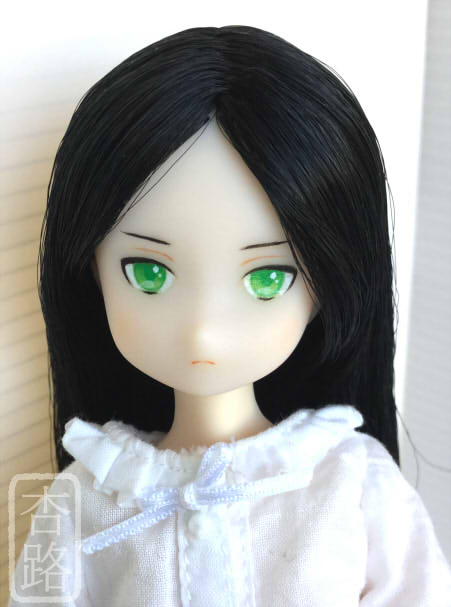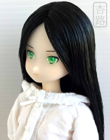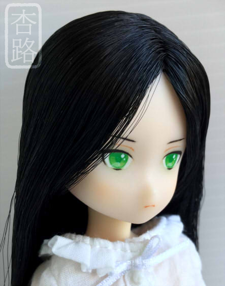 1/6 カスタムドールヘッド ピュアニーモ ナイト ピュアニーモ用植毛ヘッド 白肌 ブラック 使用 ペイントにはリキテックス使用 全体にマット保護、瞳は光沢加工しています 髪は撮影時水で整えてます サイド 後ろ ピュアニーモSサイズ 白肌 との組み合わせ例
