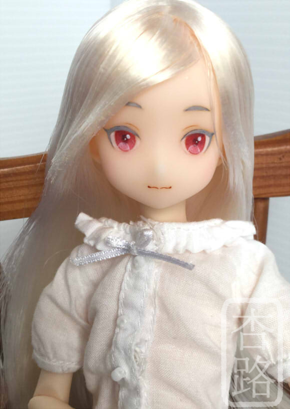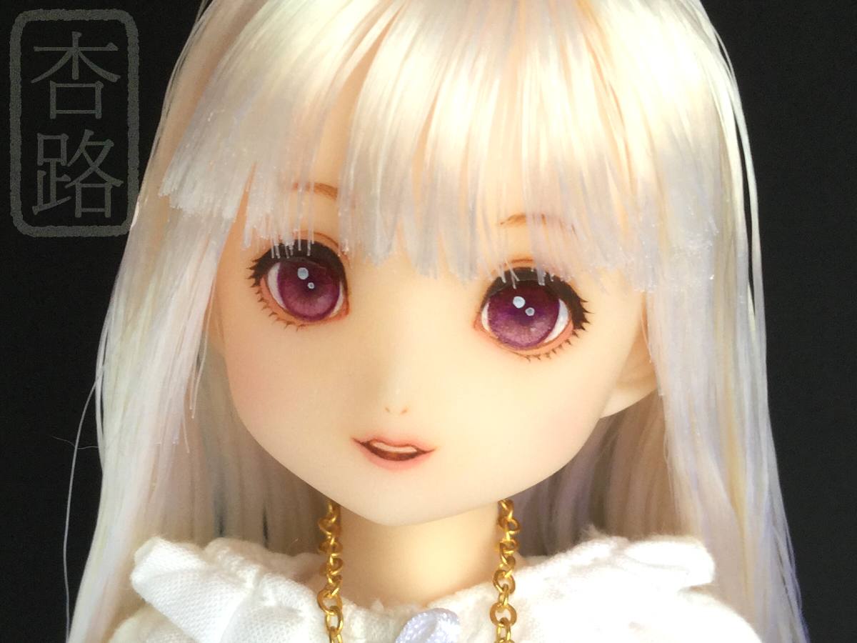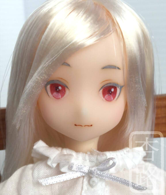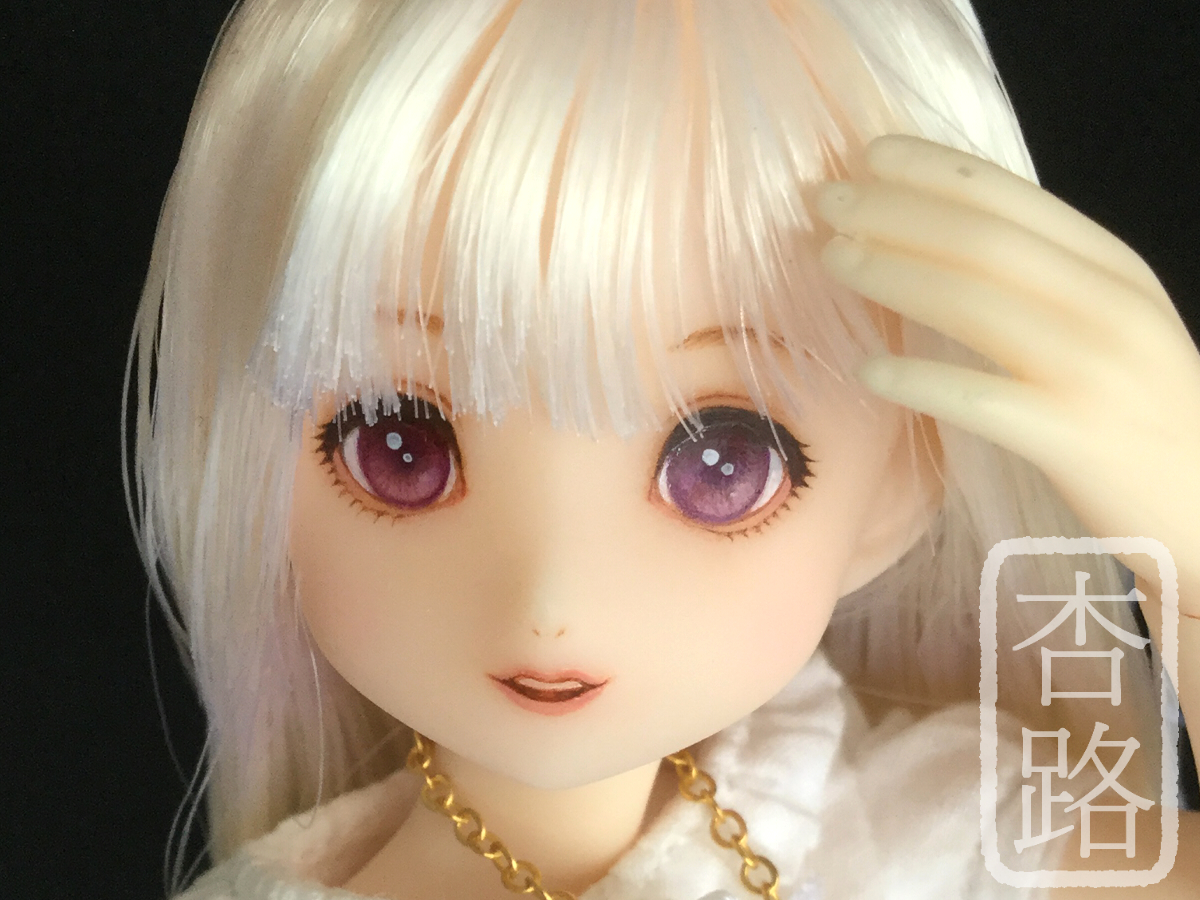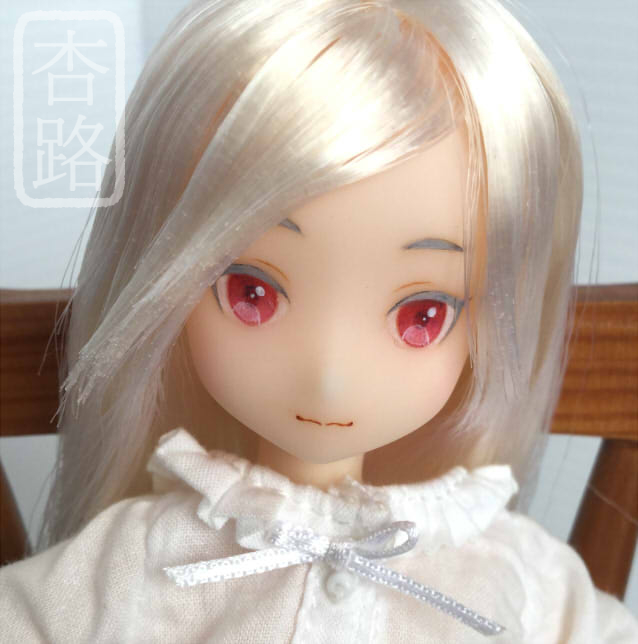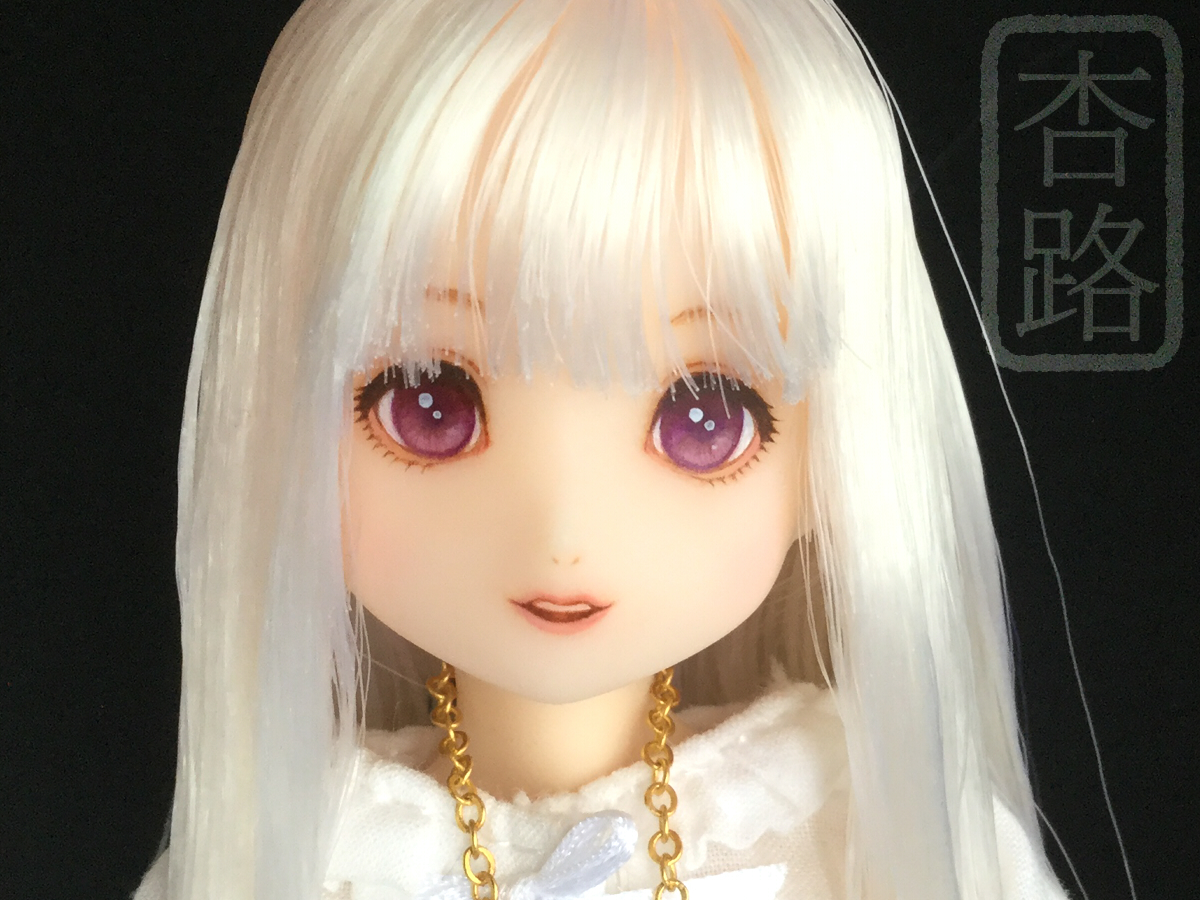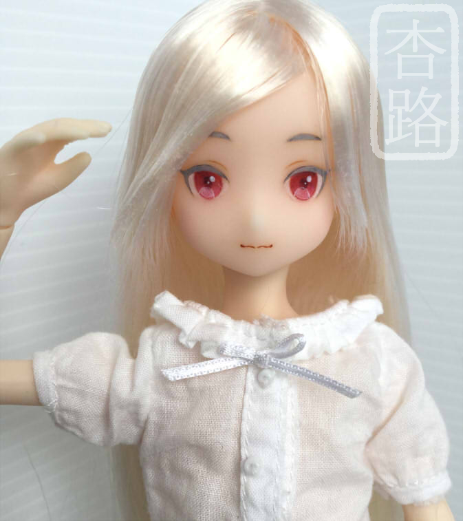 1/6 カスタム ドール ヘッド ピュアニーモ2 ミルキークォーツ ピュアニーモ用ヘッド2 使用 白肌、髪はホワイト ペイントはリキテックス使用 髪はお湯パーマ後カットしてます ペイント部分をマット保護の上、瞳に光沢加工しています 撮影に使用したボディはピュアニーモSサイズ白肌です
